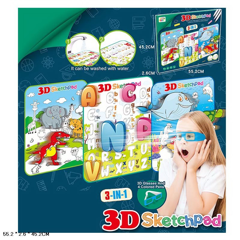 Розмальовка 832 3д об’ємні картинки в окулярах, змиваються водою, маркери, в коробці 55*2,6*45,2см