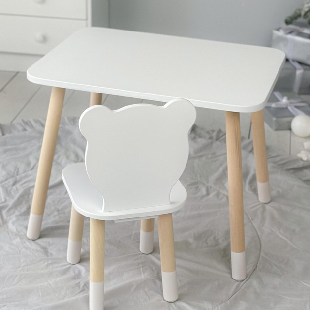 Столик прямокутний білий + стільчик ведмедик кількість