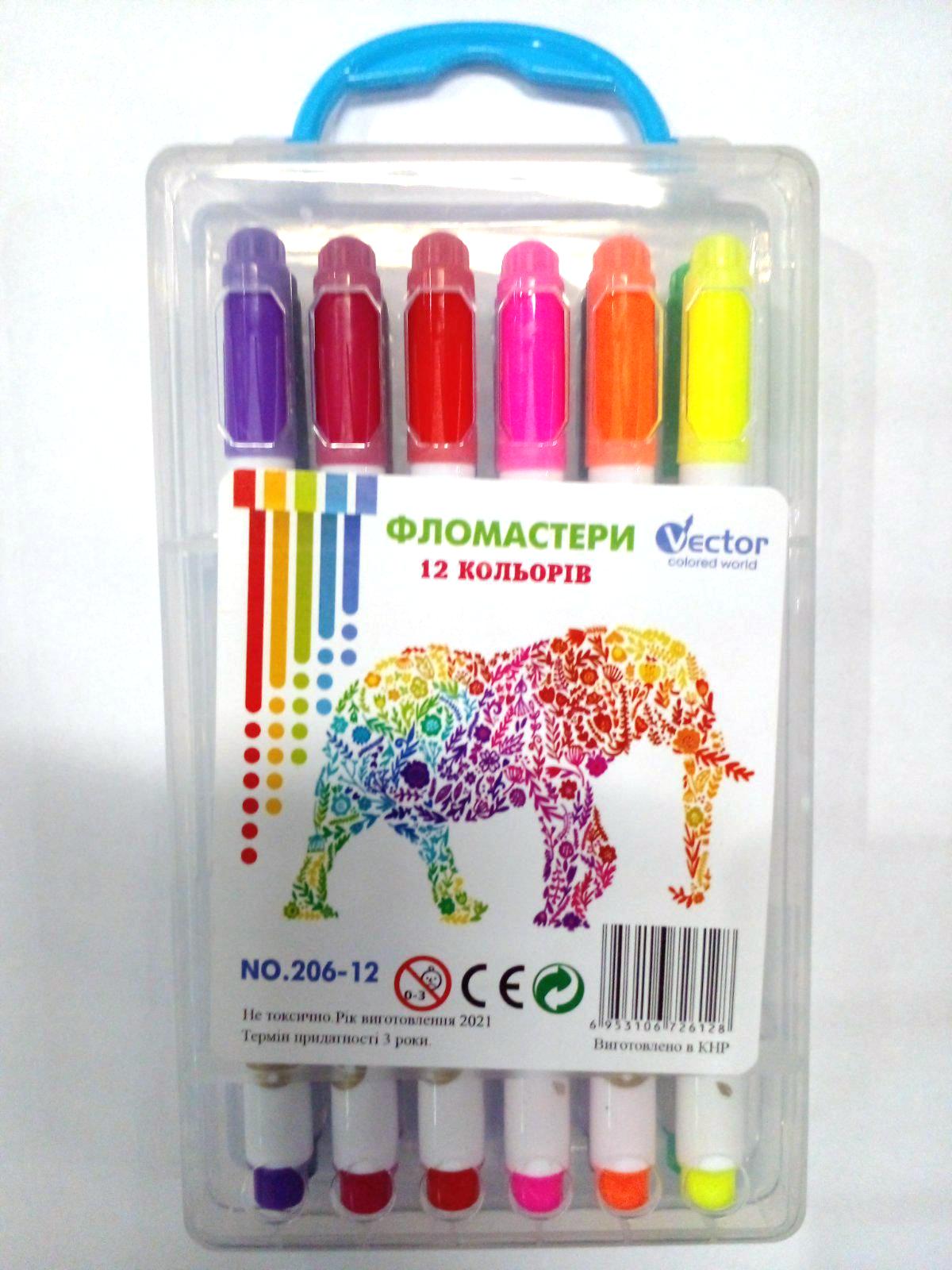Фломастери 12 кол в пластиковому пеналі.206-12 25Х4-5 або 23Х2-5 (160) кількість