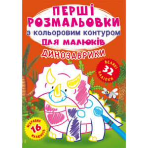Перші розмальовки з кольоровим контуром для малюків. Динозаврики. 32 великі наліпки (9789669874245)